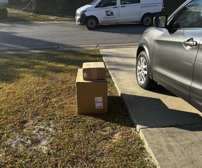 FedEx dropped this huge box in the middle of the yard a few feet from the curb.