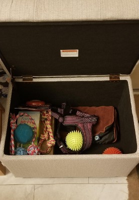- Hinged lid makes it easy to tuck items away for neat and tidy spaces