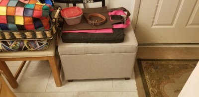 - Upholstered rectangular storage ottoman brings functional style to any room