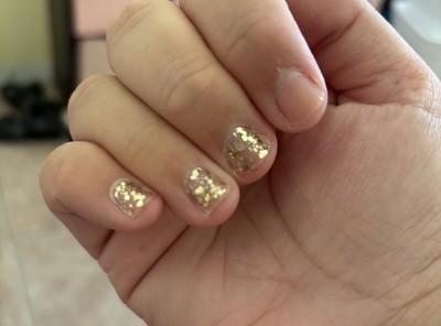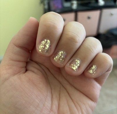 Perfect gold glitter . Great over colors or put over gold polish as an accent nail . Essie is a great polish