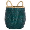 Organize any corner with our stylish and charming Estra basket with handles. Offering a fresh take on traditional baskets, our storage basket adds style and convenience to any room. The tall basket swells from the bottom to attain a graceful and inviting stature. Its intricate weave is highlighted with a rich green hue to add a subtle pop of color and texture to any room. With two sturdy handles, the basket can easily be transported from one room to another. It can serve as your small and handy laundry hamper, toy basket, or household item storage to bring ultimate convenience to your home.