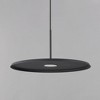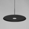 Wide flat discs house LED engines that disappear when viewed at the pendants edge. Supported at their center by thin tubes and black cable, machined aluminum housings feature laterally cut concentric circles drawing inspiration from the grooves in a vinyl record. Finished in your choice of Matte Black, Antique Brass, or Antique Copper, the modern design feels vintage and retro widening the range of compatibility within architectural aesthetics.