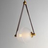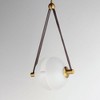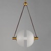 Send a message on the wire. Two semi-spherical frosted glass domes are separated by a tube of LED light and suspended by Tobacco Brown leather straps. The frames are complete in a contrasting Natural Aged Brass finish making the contemporary design softer and more applicable to traditional settings. Material: Steel, Finish Color: Natural Aged Brass, Width: 11.75", Height: 34", Length: 17.25", Lamping Type: LED, Number Of Bulbs: 1, Wattage: 14 Watts, Cri: 90, Color Temperature: 3000 Kelvin, Lumens: 750, Moisture Rating: Dry Rated