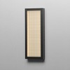 An internally illuminated shadow box is encased in glass with a tartan plaid pattern engraved to mimic linen. The back plate features a polished stainless steel plate adding an almost infinite dimension to the pattern. Constructed of aluminum in Matte Black finish and 304 grade Stainless Steel, the product is also suitable for installations outdoors.