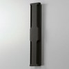 Large aluminum extrusions with indirect lighting highlights cut outs in this architectural outlook. Directed outwards toward the cutouts, these sconces are rated for outdoor applications. Select from Black or Architectural Bronze finishes and two sizes of sconce, one of which is scaled for larger façade applications. Material: Aluminum, Finish Color: Architectural Bronze, Width: 6.25", Height: 33.5", Depth: 3.25", Height From Outlet Box: 16.75", Backplate Width: 4.75", Backplate Length: 32", Lamping Type: LED, Number Of Bulbs: 1, Wattage: 36 Watts, Cri: 90, Color Temperature: 3000 Kelvin, Lumens: 1620, Dimmable: Yes, Moisture Rating: Wet Rated