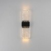 Artisanal cast glass slabs are supported by a Die Cast Aluminum bracket finished in an outdoor rated Black powder coat. Emphasizing the unique beauty of the glasses' imperfect contours, the sconces accentuate these features with concealed LED lighting. Available in 3 size configurations, the sconces provide adequate lighting and showcase the craftsmanship of the artistic glass.