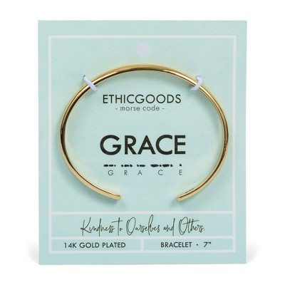 Be one-of-a-kind with this Morse Code Patterned Cuff! Crafted with 14k gold plated metal and handmade with love, this classic piece gets a fresh twist with a uniquedesign! Adjust it to your wrist size and you're ready to show off your stylish look with a dash of individuality!Thecuff pattern is made of dots and dashedthat spell different empowering wordsin Morse Code. What word will you chooseWed love to hear what your jewelry means to you. Share your story and photos with us! @ethicgoods