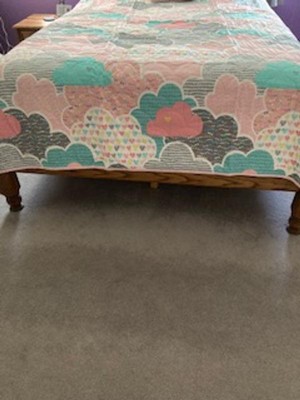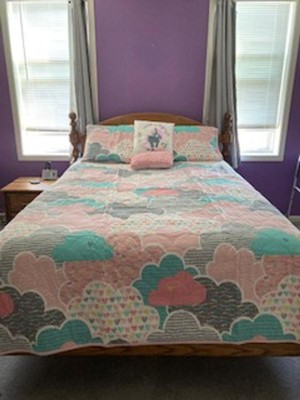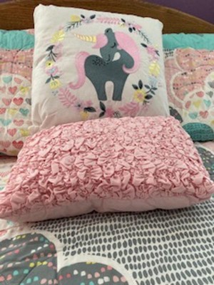 I am happy with the quilt, pillow cases, and small pink pillow. The pillow with the embroidered unicorn is really ugly so we don’t use it.