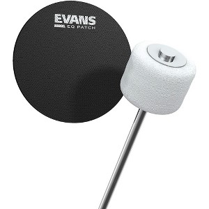These EVANS EQ bass drum patch comes in black or clear. The clear patch strengthens the head without affecting attack, sustain or low end. The black version softens attack slightly.