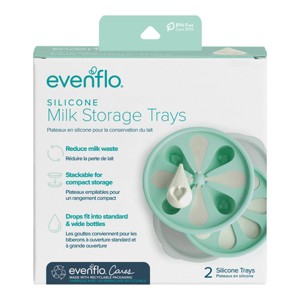The Evenflo Feeding Stackable Silicone Breastmilk Storage Tray 2pk allows you to store up to 4 ounces of breastmilk (2 oz. per tray) in your freezer or cooler. One freezer tray can fill eight adorable heart-debossed drops of love. Each perfectly-portioned drop holds one quarter-ounce of milk which helps reduce the risk of waste by allowing you to employ only the amount needed for a feeding.