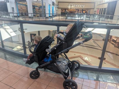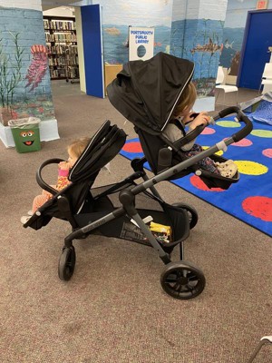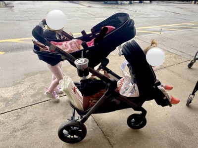 [This review was collected as part of a promotion.] I love this stroller as a single and with an infant car seat however my favorite set up is using it with this second seat. While I like all the main features of this stroller, where I think it really shines is in its ability to so easily convert from a single to a double and the many configurations it offers for two kids. I have a 2 year old and an infant and have used this stroller in many ways, however most frequently I have my infant on top facing me and my toddler on the bottom facing out though I can easily flip the direction the seats face when needed. One of the features I love most about this seat is its ability to fully recline and expand to a carriage-like position for an infant. This is such a cool feature that I haven’t seen on many strollers. Other strollers require a separate, bulky carriage attachment that you have to purchase separately and then store when not in use which isn’t ideal. Being able to go from a normal seat to a fully reclined infant-ready seat is really a game changer for me. There are a couple things I wish were improved. While the canopy is decent, I’d like to see extendable panels to provide better shade for stroller naps. Also, the belly bar either has to be completely on or off which I don’t like. I wish you could unclip one side and swing it over to get your kid in or out and then clip it back. Overall, I think this is a fantastic double stroller at this price point with many features that make it feel even more high end. Thanks to the Stellar Product Testing Panel for providing me with this second seat.