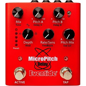 Secret SauceSavor the secret sauce simmered into countless hit records with the MicroPitch Delay Pedal. By utilizing subtle pitch shifts to create a rich stereo spread, MicroPitch Delay makes anything cook up sonically delectable. This pedal is the key ingredient for serving up flavorful tone: Instantly harness soaring leads that jump out of the mix, add distinct lushness to a compelling clean passage and get fill of vibey modulation that’s sure to sweeten any pot with the push of a button. Sample a bite of our newly baked up Positive and Negative Envelope modulation sources and ’ll be sure to come back for seconds; and major and minor thirds. MicroPitch Delay adds unparalleled dimension to any source; it’s not just a guitar pedal -- Use it to thicken vocals, keyboards, drums, strings, brass, winds and more. What’s the recipe for the MicroPitch Delay pedal? It's a unique flavor profile of dual pitch-shifters with fine-resolution de-tuning and modulation combined with delay in a delicious red package. The pedal is the latest incarnation of a legendary effect that originated in the H910 and H949 Harmonizers, and later popularized with the H3000. It can be utilized for chorusing and savory repeating delays. It's a creative sonic design tool. It’s effective whether used subtlety as a thickening tone-enhancer or dialed to the extremes for special effects. The simplicity of the pedal’s ability to make things sound bigger is what makes it so tasty! With the MicroPitch Delay pedal, can easily harness the power of this iconic Eventide effect that helped shape musical history.