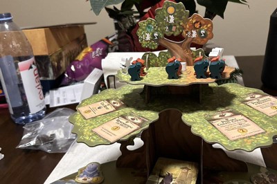 Love that this game is more complexed than monopoly, but easy enough for children around 8 years of age and up. It might take rounds to explain it to kids, but they will pick up the rules. The cardboard tree will slowly fall apart from reassembly and disassembly. The game is also very cute and there’s many ways to win. On average it takes 4 hours to finish the game.
