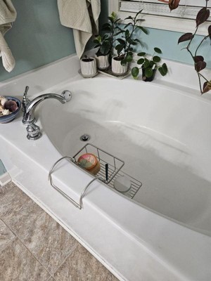 [This review was collected as part of a promotion.] This is perfect for the side of my garden tub! It fits my bubble baths, scrubs, and razor so they are easy to get to. I also like how it looks with the rest of the metal accents in the bathroom. I am going to get one for my daughter's bathroom.
