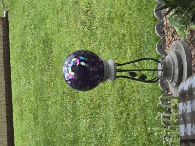 • This gazing ball reflects the sun, adding drama and light to wherever you place it