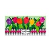 This beautiful set captures all the seasons. Easily switch up your seasonal style at your door step! Set a welcoming tone for guests and friends with this well made door mat and tray collection. Designed to pick up dirt and debris while adding unique flair to your entryway. Included are 4 interchangeable mats including colorful tulips for spring, bold red flowers, welcoming you "Home Sweet Home," a cheerful snowman that says "Welcome Friends" for your holiday visitors. Now you can get a stunning seasonal selection of these top sellers in one convenient set. Includes four interchangeable mats and our signature mat tray. Each mat measures 10 x 22 inches. Mat tray measures 18 x 30 inches.