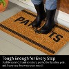 - DURABLE: The mat's top surface is crafted from a weather, fade and stain resistant 100% natural coconut husk that is outdoor safe for long-lasting use. Artwork is printed directly on the mat, so it will last with high foot traffic. A durable, anti-skid rubber backing stays firmly in place on your porch or floor. Perfectly gentle for wiping muddy dog and puppy paws.