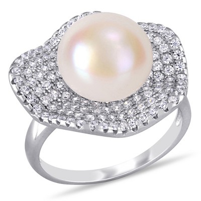 EVERLY JEWELRY |Sterling Silver 1-1/10 CT TGW Cubic Zirconia And 10-10.5 mm Freshwater Cultured Fashion Pearl Ring