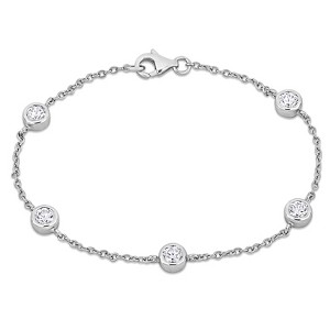 Add a touch of sparkle to your ensemble with this exquisite Sterling Silver Station Bracelet. Featuring a total gem weight of 2 carats of radiant cubic zirconia, this bracelet shines brilliantly, capturing the light from every angle. Crafted from high-quality sterling silver, the bracelet showcases a series of sparkling stations that create a delicate yet eye-catching design. The secure lobster clasp ensures a comfortable fit, making it perfect for daily wear or special occasions. Measuring 7 inches in length, this versatile piece can be worn alone for a simple elegance or layered with other bracelets for a trendy stacked look. Treat yourself or surprise someone special with this beautiful bracelet, a timeless addition to any jewelry collection.