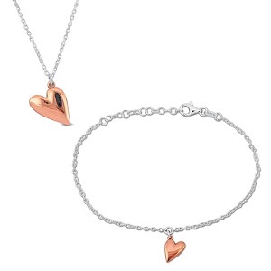 EVERLY JEWELRY | Two-Tone Silver Heart Charm Necklace and Bracelet Set -17.5 in + 8 in-Multiple Metal Color Option