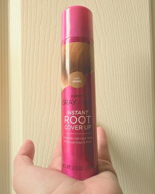 [This review was collected as part of a promotion.] I wanted to love this — I really did. But instead of “Gray Away,” it was more like “Brown All Over.” The medium brown shade came out looking like I dunked my head in espresso, and as a bonus, it rubbed off on everything — hands, pillowcases, probably even innocent bystanders if they got too close. Honestly, it felt less like a root cover-up and more like a moody, tinted dry shampoo with commitment issues. Gray? Sort of gone. Confidence? Also gone — and trust me, there are no pictures because no one needs to remember that. That said, this stuff would absolutely crush it as a Halloween hairspray. Want to be a witch with suspiciously crunchy hair? Nailed it. Vampire with dramatically dark roots? Perfect. Zombie with extra intense volume? Say no more. For everyday use? Meh. For spooky season? Five stars — would haunt again.