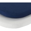 - Solid navy and gray sheets match most baby boy nursery themes.