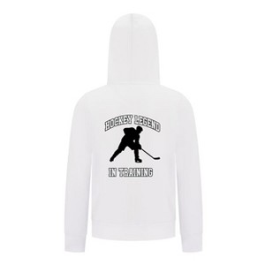 A must-have hoodie for every young player chasing greatness. Featuring a bold “Hockey Legend In Training” graphic, this cozy hoodie keeps kids warm on and off the ice. Soft fabric, durable print, and everyday comfort designed for school, practice, and weekend rink runs.