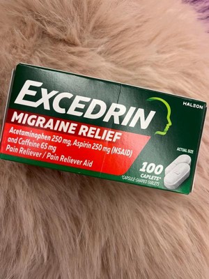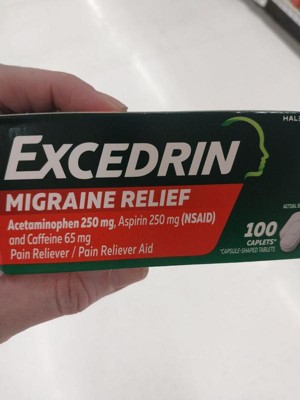 Every time I have a migraine I just go for my no go wrong excedrin migraine and it helps me right away and one thing I really love it’s the texture of the pill it so easy to swallow
