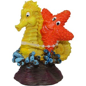 Safe for both freshwater and marine aquariums, this ornament features hollow openings for fish to explore and detailed hand-painted textures for added realism. Designed with a charming seahorse and star motif, it brings whimsy, visual depth, and structural variety to tanks of any size, making it a versatile and decorative addition to aquatic environments.