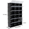 Features: MULTI-PURPOSE CUBE: This cube storage can be used in many places: a collection shelf in your study room, a clothes organizer in your bedroom, a display shelf in entryway, and a toy storage solution in kids roomDescription: Name: Shoe Rack1. Material: ABS connectors, PP Plastic Panel and Rust-proof Metal Frame 2. Color: Black Panels and White Door 3. Size for Each Cube: (12 x 15.75 x 12)" / (30 x 40 x 30)cm (L x W x H) 4. Product Size: 47.25"(W) x 12"(D) x 72"(H) /120cm(W) x 30cm(D) x 180cm(H) 5. The Max. Load Capacity of Each Grid: 10lb / 4.54kg Packing list: 1 x Shoe Rack Note: Different displays may cause the color of the item in the picture a little different from the real thing. Manual measuring,please allow 1~3mm error,thank you.