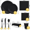 Exquisite Black Disposable Dinnerware Set 222 Pc for 20 Guests | Paper Plates, Plastic Cups, Cutlery, Napkins & Table Cover
