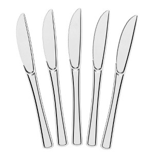 Introducing the Exquisite Heavy Duty Clear Disposable Plastic Knives - a perfect blend of convenience, durability, and style. Elevate your dining experience with these remarkable Disposable Clear plastic knives that combine the ease of disposability with the sturdiness of heavy-duty construction. With a pack of 100 knives disposable, you're well-equipped to cater to gatherings of all sizes, from intimate family dinners to lively parties. Crafted from high-quality plastic, these knives are designed to mimic the appearance of real cutlery, adding a touch of elegance to any occasion. The sleek, Clear design exudes sophistication, making them suitable for a wide range of events, from formal banquets to casual picnics. Whether you're hosting an indoor dinner party or a delightful outdoor barbecue, these Clear disposable plastic knives seamlessly blend with your chosen décor, enhancing the visual appeal of your table setting. The heavy-duty construction of these knives ensures that they can tackle a variety of foods with ease. From slicing through succulent steaks to effortlessly gliding through delicate desserts, these knives offer a reliable cutting experience that is comparable to traditional flatware. The use of premium plastic material imparts exceptional strength to these knives, preventing them from bending or breaking during use. This durability not only adds to their functional value but also makes them a safer alternative to flimsy, single-use options. One of the standout features of these Plastic Clear knives is their disposability, which eliminates the hassle of post-meal cleanup. After the festivities are over, you can simply gather the used knives and dispose of them responsibly, saving you time and energy. This makes them an ideal choice for busy individuals, party hosts, and event planners who want to streamline the cleaning process without compromising on quality. The pack of 50 disposable plastic knives ensures that you're well-stocked for various occasions. Whether you're organizing a corporate luncheon, a birthday bash, a wedding reception, or a simple family meal, these knives cater to your needs effortlessly. Their versatile design makes them suitable for a variety of cuisines, making them an indispensable addition to your kitchen supplies. In summary, the Exquisite Heavy Duty Clear Disposable Plastic Knives - 50 Ct. bring together the convenience of disposable cutlery and the durability of heavy-duty construction. With a sleek and elegant design, these Clear plastic knives disposable elevate the aesthetics of your table setting while offering reliable cutting performance. Their solid construction guarantees strength and longevity, ensuring they won't let you down even when slicing through tough foods. Say goodbye to the tedious post-event cleanup – these knives are designed for hassle-free disposal, making them a practical choice for any gathering. Stock up on this pack of 50 and be prepared to impress your guests with both style and functionality at your next event.