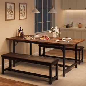 This extendable dining table set is the perfect solution for your space! It comfortably seats 4 to 6 people, making it ideal for both daily meals and entertaining guests. The sturdy metal frame and "H"-style support ensure a wobble-free foundation. With benches that tuck neatly underneath, it saves precious floor space in your apartment or small kitchen. The easy-to-clean tabletop and included tools make setup a breeze.