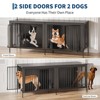 - Every Dog Has Their Own Door - Both front and 2 side doors of the wood dog crate can be opened. When two dogs are impulsive or unfamiliar with each other, they can pass through their own side doors separately to avoid hyper activity.