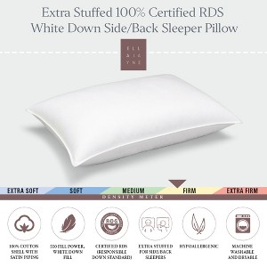 Extra Stuffed 100% Certified RDS White Down Side/Back Sleeper Pillow - Queen
