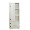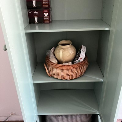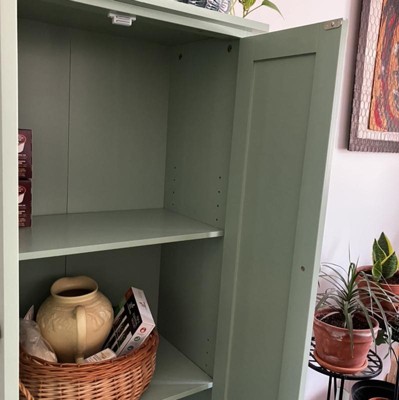 I was looking for cream colored, tall storage cabinet with doors, and this one is just that. The quality is good and my son put it together pretty easily; however, it takes two to attach the doors. A panel was cracked when it arrived, which always greatly disappoints. There was a phone number to get new parts, but I didn’t call because I just wanted the mess out of my living room. Fortunately it was in the back. The screw holes for the doors were not even, so the gap between cabinet and door isn’t equal on both sides. For a perfectionist like me, that’s not cool. Overall, though, it’s a nice piece.