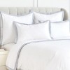 - The soft white chambray cotton texture introduces a clean, calm, hotel inspired boutique look, creating a soothing and balanced visual foundation that easily coordinates with solids, patterns, or subtle neutrals, making your space feel bright, thoughtfully curated, and intentionally styled.