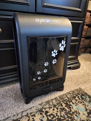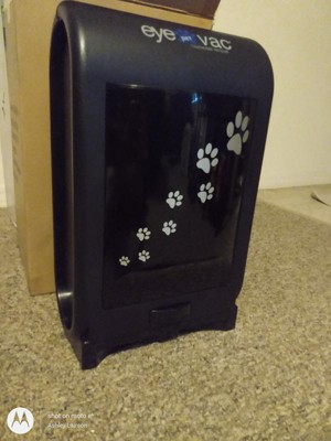 [This review was collected as part of a promotion.] Eyevac 6.5 court, stationary touchless vacuum comes in many different varieties. I received the EVPET black with paw prints. Very adorable if you want a design rather than a solid color. Conveniently tucked and is not too big. I was surprised with how lightweight it was. Easy to use. You have the side filter that slips out. It has a turn control dial also located on the side that gives you the option of automatic mode, manual mode, and off. Blue indicator light will show it is on. Solid red canister lights let you know when it's time to empty. Easy to clean. I do wish for more elaborate instructions on the detail of what it does and how it works. So it's a neat little gadget that allows you to sweep debris in front of the sensor as it vacuums up a certain 180 radius. That's about it. It would be cool if they added an air purifier. So if you have trouble bending or don't feel the need to this is a tool for you to use.