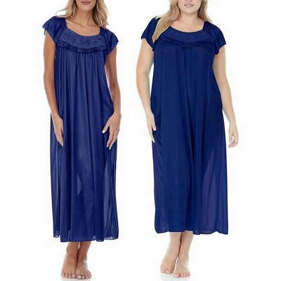 Product Name: Ezi Satin Nightgowns for Women - Soft & Breathable Knee-Length Night Gowns - Adult Womens Nightgown - Royal Blue, X Large