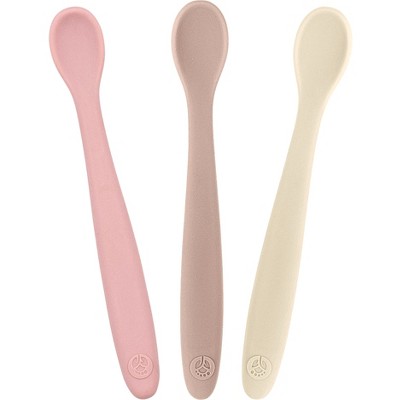 These spoons are so cute and well designed. The handle shape and size makes it easy for my baby to handle! My 5 month old has been playing with these at the table, practicing for starting solids! Having multiple spoons will allow us to rotate and trade a loaded spoon for an empty spoon with her.
