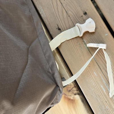 [This review was collected as part of a promotion.] This couch cover is a neutral color that can go well with a wide variety of outdoor furnishings! We have rust colored outdoor rugs and couch cushions so this works really well. I typically order 54” covers for my loveseats - this 58” loveseat cover fits almost identically so be aware that it runs a bit smaller than other brands. There are buckles to go around the loveseat legs, as well as a bungee tightening cord to ensure the covers don’t fly off with the wind. I live in Ohio and have never needed to use these. There is also an air vent, but only on one side of the couch. The cover material is slightly less thick than my previous brand, however it’s also about 2/3 the price. I expect this will hold up nicely for a couple years! I received an incentive to write this review.