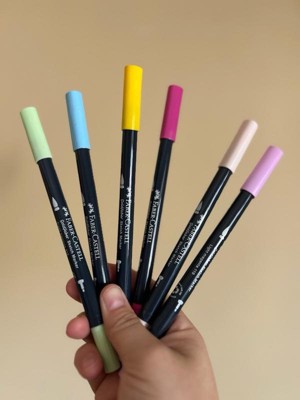 Unleash your creativity with Faber-Castell Alcohol Markers in 6 pastel, kawaii-themed colors. These markers have two tips: a fine tip (0.6mm) for details and a brush tip (1mm to 5mm) for broader strokes. You can create beautiful shading, layering, and 3D effects with vibrant colors. Blending is easy, giving you smooth gradients on paper. These dual-sided markers are perfect for coloring, doodling, and drawing, with fast-drying, smudge-free ink. They are also odorless, pH-neutral, and acid-free, making them suitable for all skill levels, from beginner to expert. Each marker's cap and barrel are crafted from 100% post-consumer recycled material and may show color variations due to production. The Faber-Castell Goldfaber Alcohol Sketch Markers - Kawaii 6 Count Set includes the following cute pastel colors: 382 Dull Beige Red, 107 Cadmium Yellow, 312 Fresh Bamboo, 164 Water Blue, 119 Light Magenta, and 125 Middle Purple Pink. Since 1761, Faber-Castell has proudly created art products designed to inspire creativity for all skill levels.