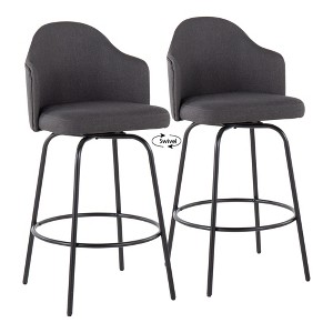 Fabric Padded Contemporary Counter Stool with Swivel and Metal Base for Kitchen Island or Home Bar, Set of 2 - 1 of 4