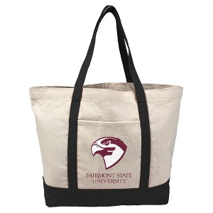 Fairmont State University Falcons Primary Logo Canvas Tote Bag With External Pocket, Reusable Shoulder Bag for Shopping, School, Beach