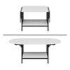 This contemporary convertible folding coffee table is like a magic piece in any living area, being both multi - functional and stylish. It can smoothly change from a space - saving square shape to an expanded oval one, just fitting your room size and what you need. With a sleek white tabletop, a strong black metal frame, and a useful lower storage shelf, it combines modern looks with practicality.