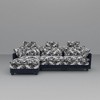 Materials: The seating area is upholstered in a black - and - white floral print velvet fabric, while the sides feature blue chenille. The frame is made of solid wood, ensuring durability. Cushions consist of high - density foam and springs for a balanced blend of comfort and support.
