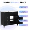 FAMYYT 36 in. Single Sink Freestanding Black Bath Vanity with White Ceramic Top, 4 Drawers, Door Racks, Adjustable Shelf