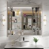 Upgrade your bathroom experience with our sleek aluminum LED medicine cabinet. The flowing light feature elegantly illuminates with a gentle touch, while dimmable brightness and adjustable color temperature adapt to your daily rhythm. Never struggle with fogged mirrors again thanks to the anti-fog function. The interior automatically lights up for midnight visits, and the built-in outlets conveniently charge all your devices. With customizable tempered glass shelves and a full mirror interior, it combines smart functionality with modern luxury, making your morning and evening routines effortlessly smooth. Fully assembled for easy installation.