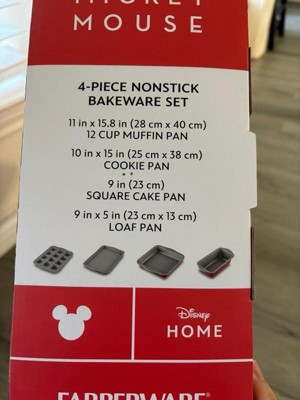 Farberware Disney Bake with Mickey Mouse 4pc Nonstick Bakeware Set Red: Baking Pan & Sheet Set, Dishwasher-Safe