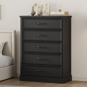 Farmhouse 5 Drawer Dresser, 42.7" Tall 5 Chest of Drawers Nightstand with Sturdy Foundation, Black Wooden Cabinet for Bedroom Living Room Nursery